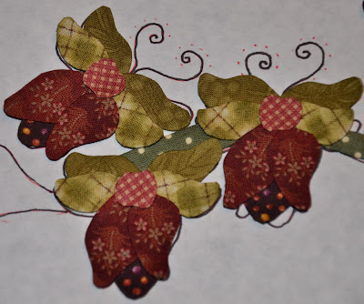 The leaves next to the pumpkin used to be green, but now they are gold with swirls. I'll be changing my mind a thousand times before this quilt is finished.