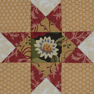 I'm making great headway on the Block of the Month (BOM) for RJR fabrics using Autumn Landscape designed by Lynette Jensen. I have 32 blocks completed. During the BOM, you will be making 4 of each block.