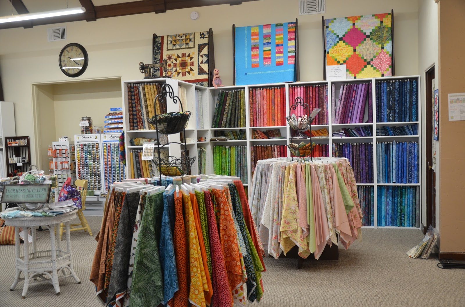 Before the building housed Friends Around the Block, it was a mortuary. The owner was going to the name the shop Dying to Quilt....but thought better of it.